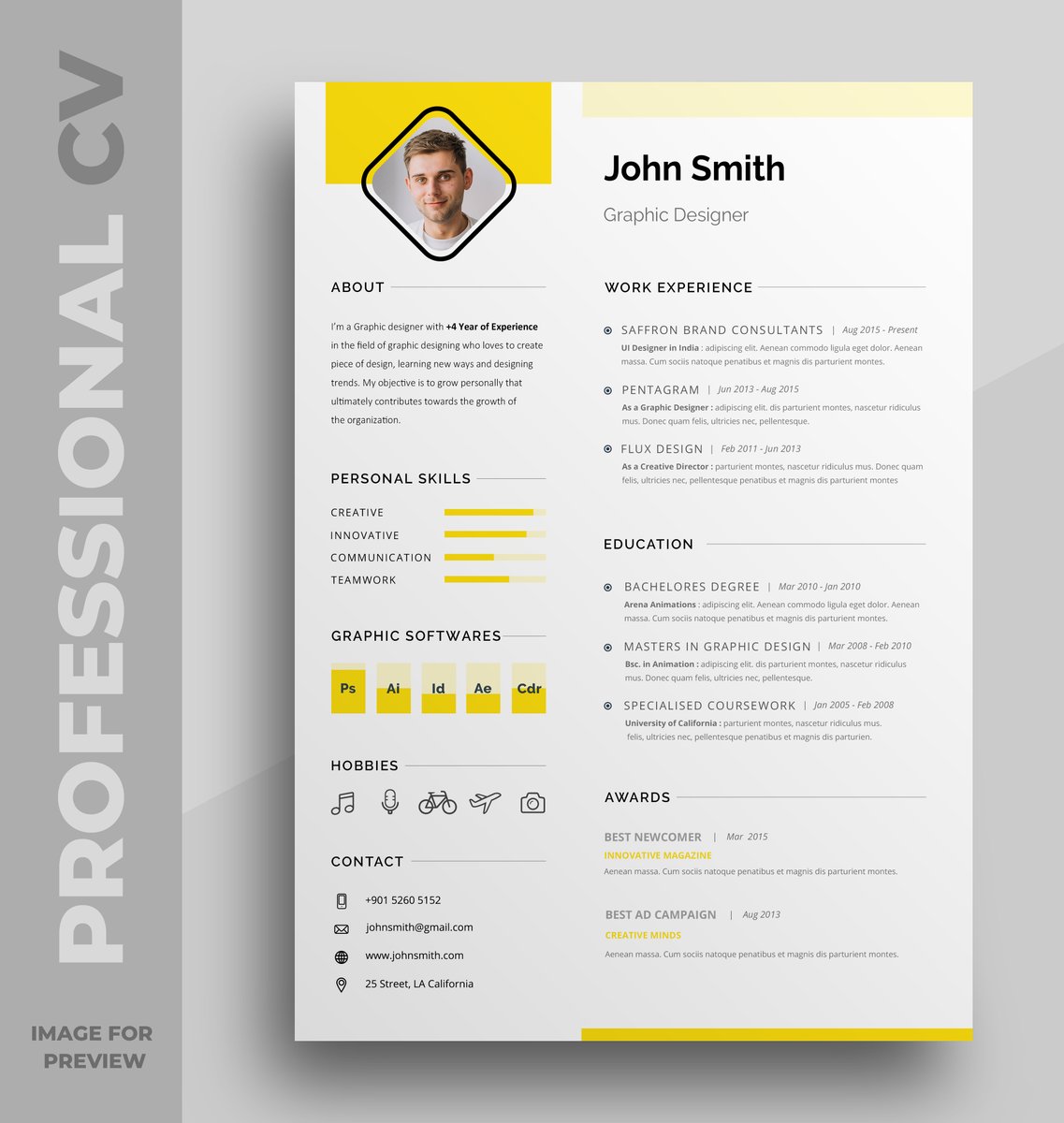 Download free Profesional Cv Template Graphics template. Fully editable and customizable design template for your creative projects.