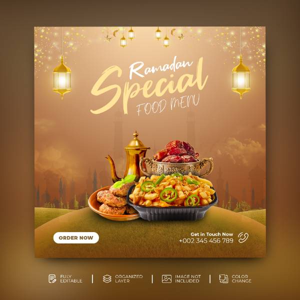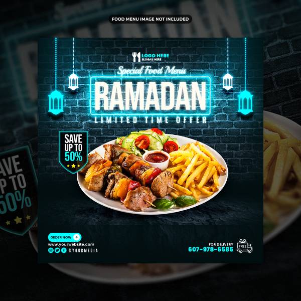 ramadan kareem special food menu social media post template