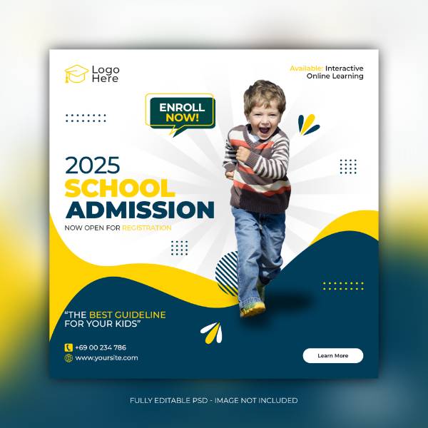 kids school education admission social media post and web banner