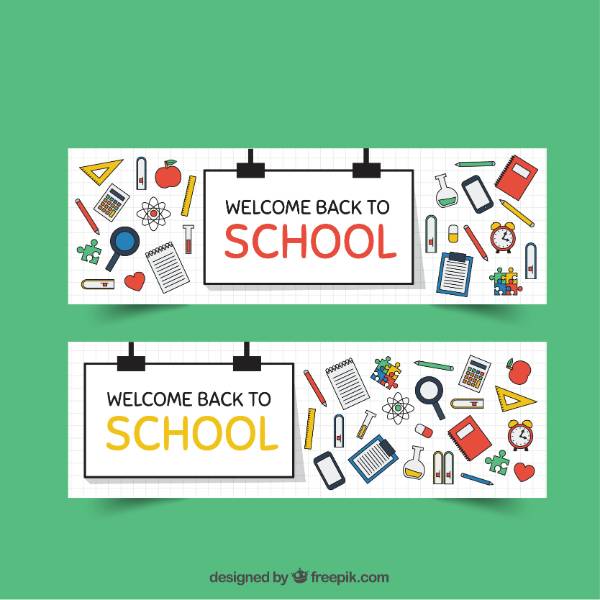 School banners with artistic elements