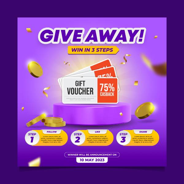 giveaway social media post with three steps win