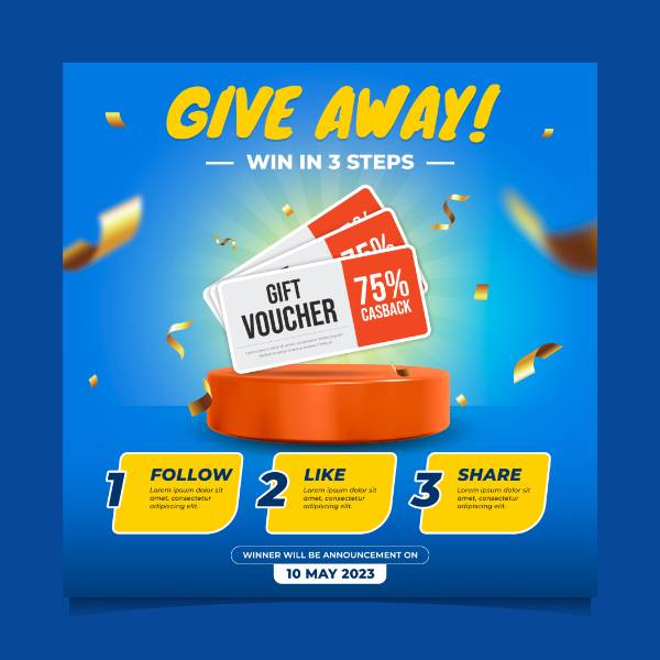 Showing 20 of 20 assetsgiveaway steps social media post with 3 steps win