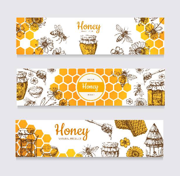 honey banners vintage hand drawn bee honeyed flower