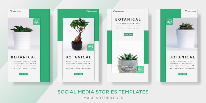 botanical banner template with green color media social stories