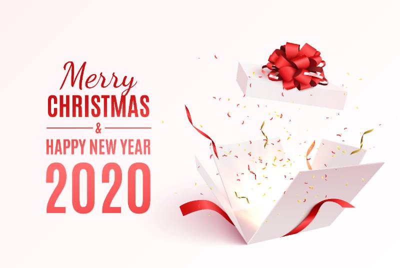 gift box with red ribbon bow merry christmas happy new year banner