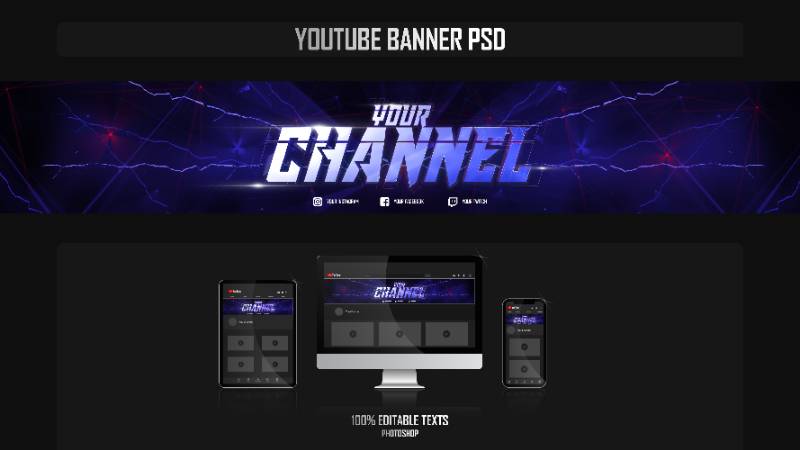 youtube channel cover banner display image interface 3d mockup
