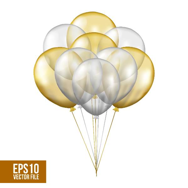 Showing 40 of 60 assetsSilver and gold flying transparent helium balloon
