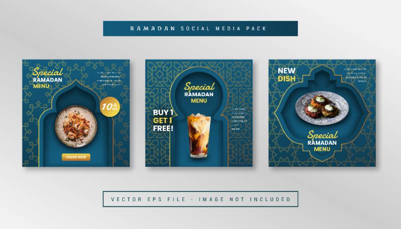 set simple square banner with ramadan food theme instagram facebook