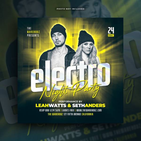 electro night party flyer social media post web banner