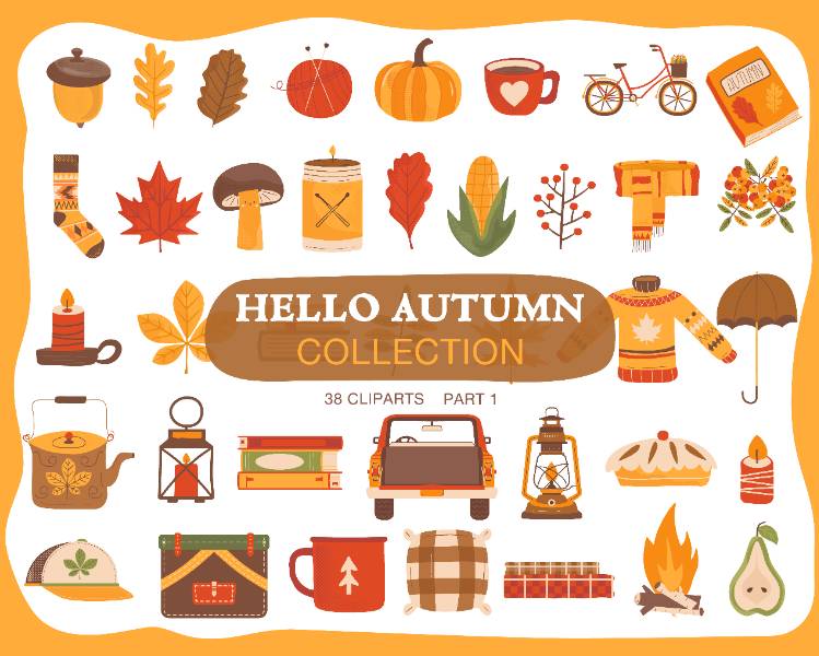 autumn hand drawn clipart collection fall season cozy symbols bundle