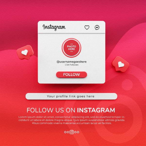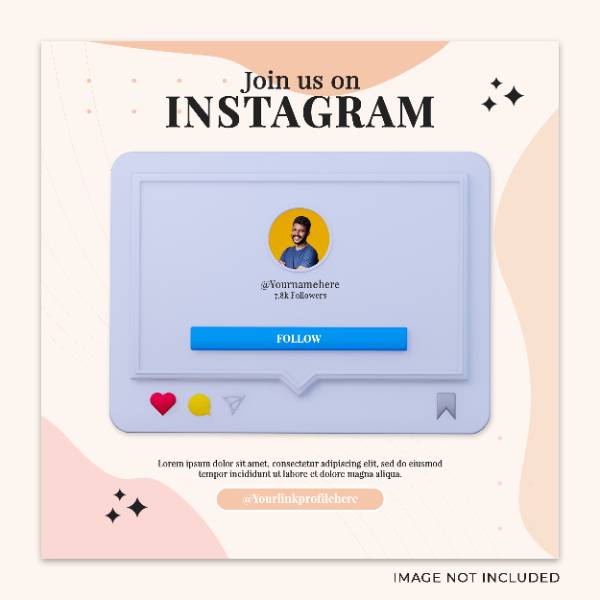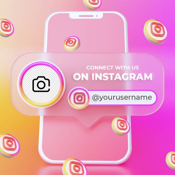 follow us instagram social media square banner with 3d logo link