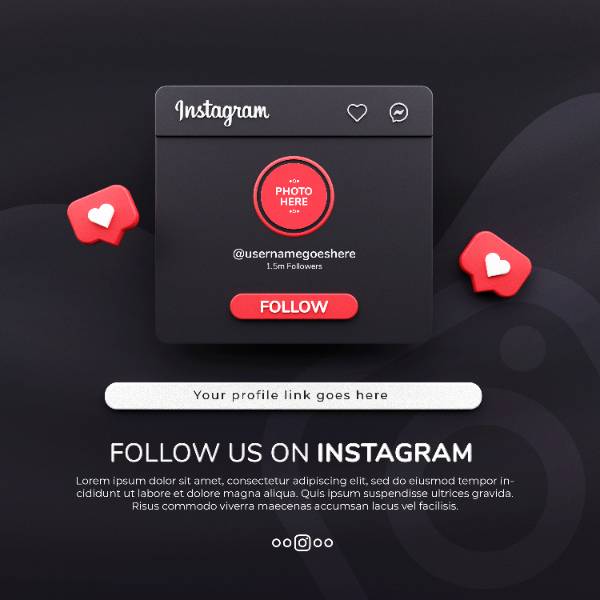 3d rendered follow us instagram dark mode social media post mockup