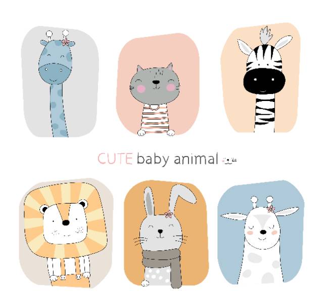 hand drawn style cartoon sketch cute posture baby animal with frame