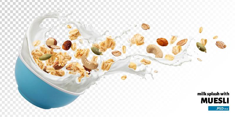 Showing 10 of 10 assetsgranola with milk splash isolated white background