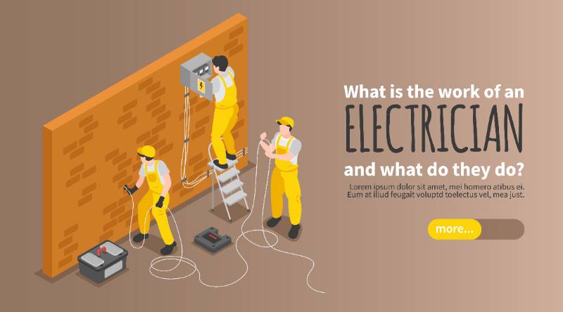 electrician isometric banner with equipment work service
