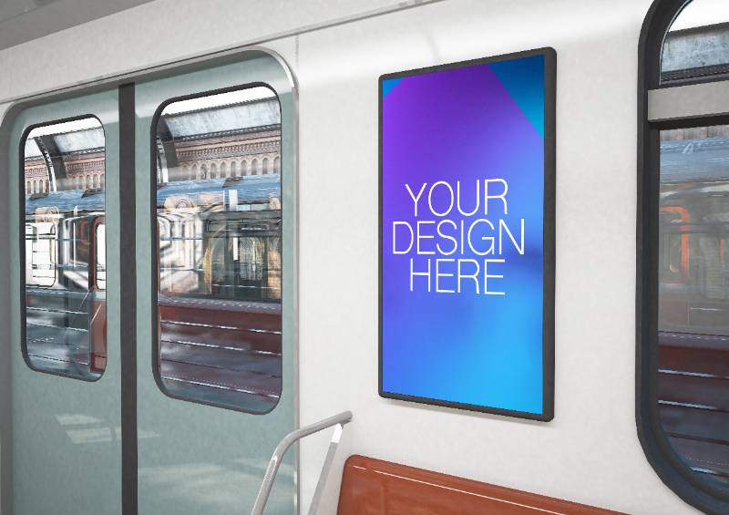close up poster train interior mockup