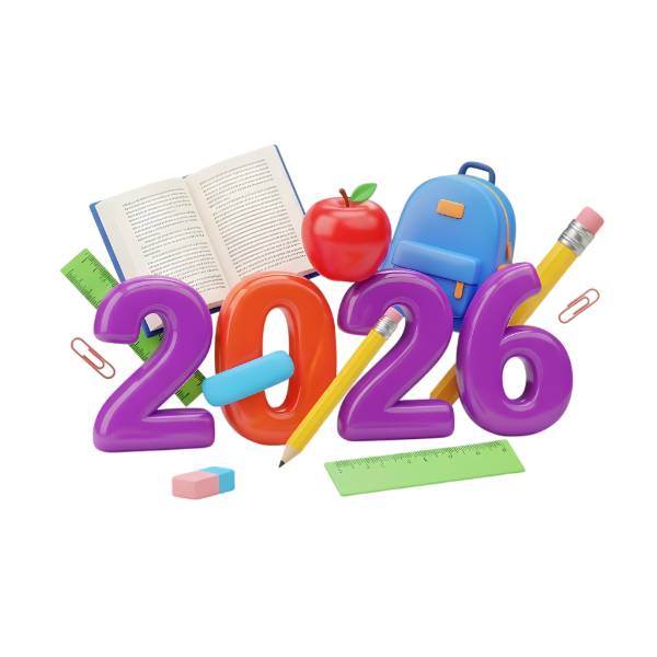 Showing 13 of 13 assetsglossy 3d numbers 2026 with school supplies illustration