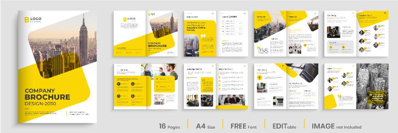 company profile brochure template design with yellow shapes minimalist