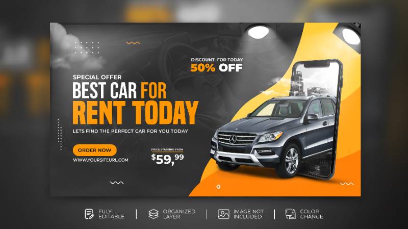 car rental sell promotion web banner social media template modern