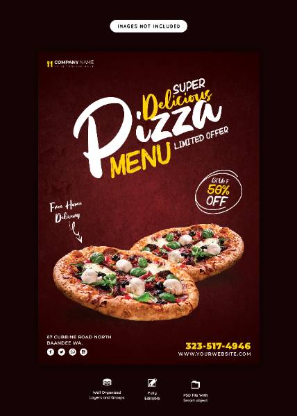 food menu and delicious pizza flyer template