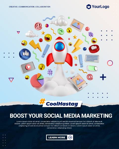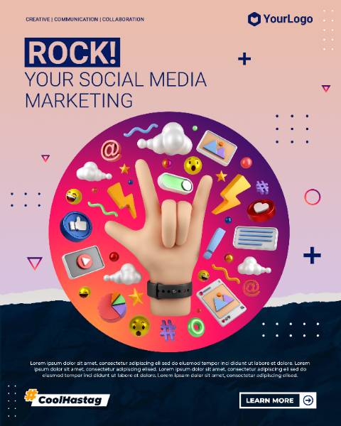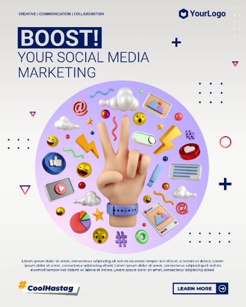 social media marketing instagram portrait post with 3d cartoon illustration