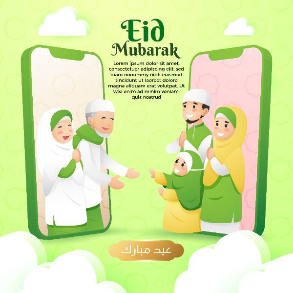 eid mubarak greeting banner template video call with mobile phone
