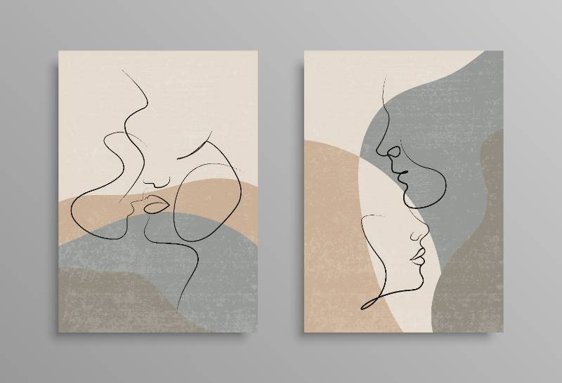couple one line drawing cover poster design love print couple kissing
