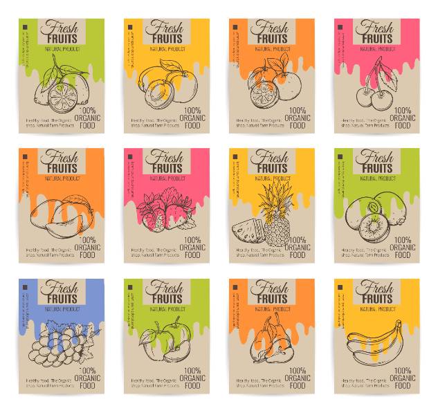 hand drawn fruits posters set