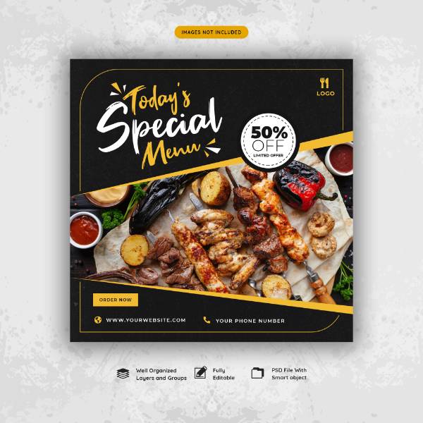 social media post template with restaurant special menu concept