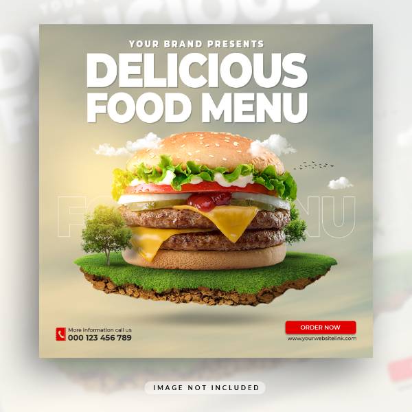 burger food menu and restaurant social media post and instagram