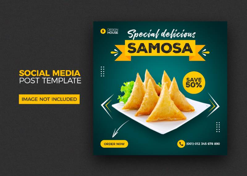 food menu restaurant samosa social media post template
