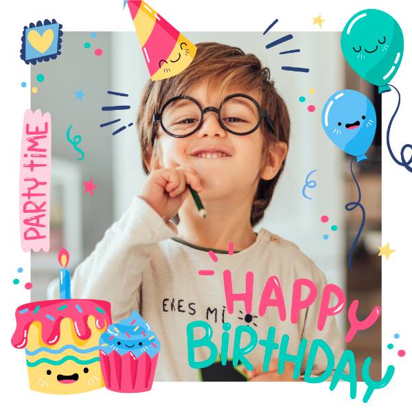 birthday instagram post with happy child balloons