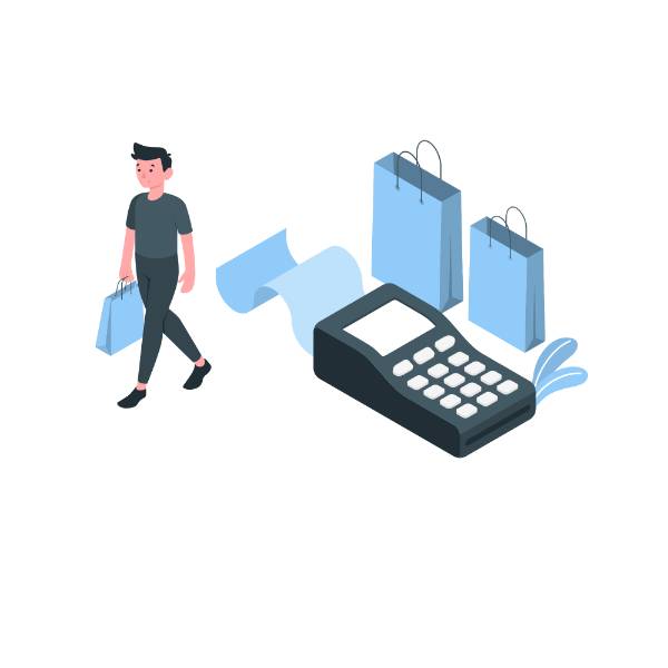Shopping man in blue long sleeve shirt and blue pants standing on white floor Ecommerce Trade Marketing Digital Marketing Businesstobusiness Service Industry t