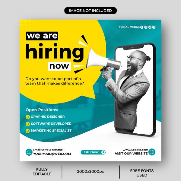 we are hiring job vacancy social media post template