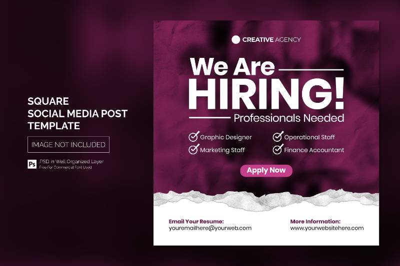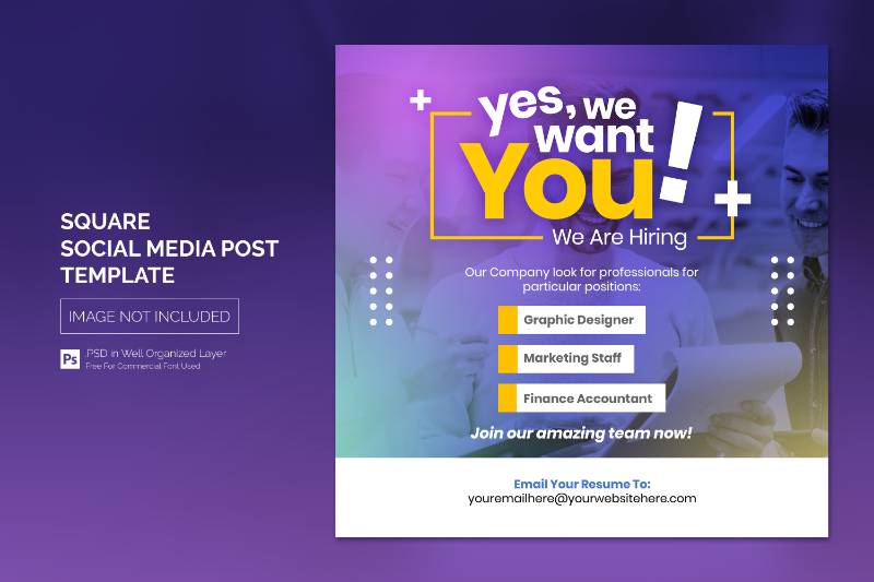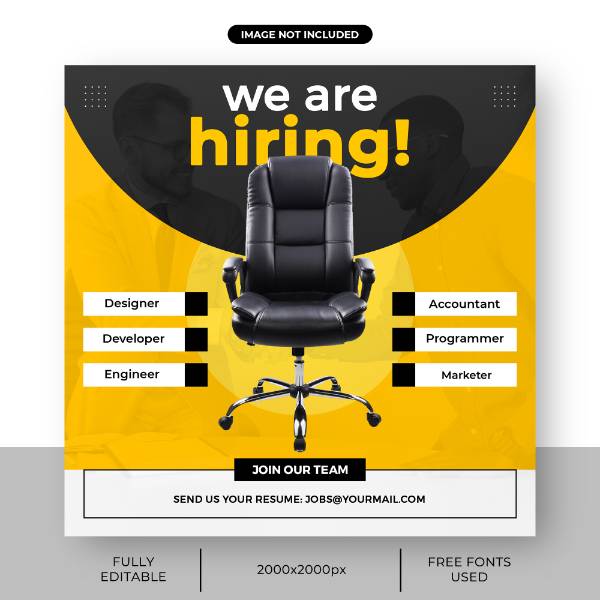 we are hiring job vacancy square banner social media post template 5