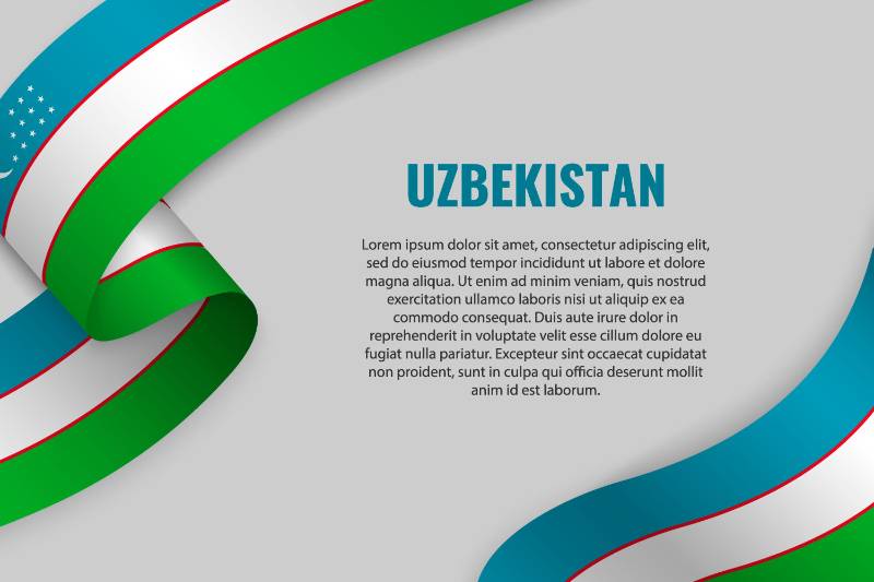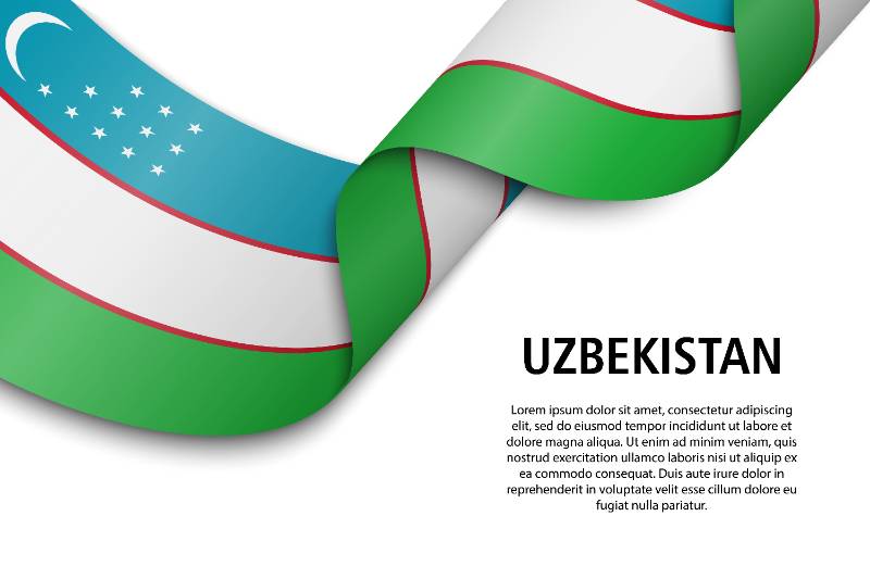 waving ribbon banner with flag uzbekistan