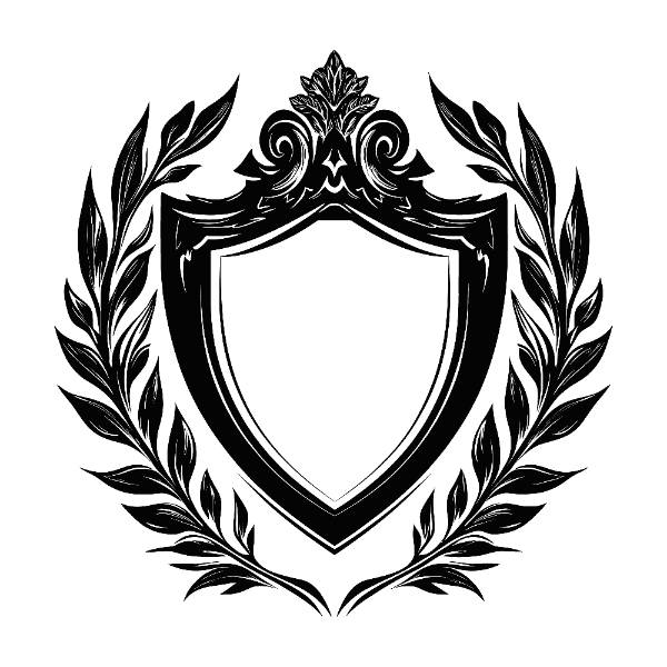 shield with black white background that says word it